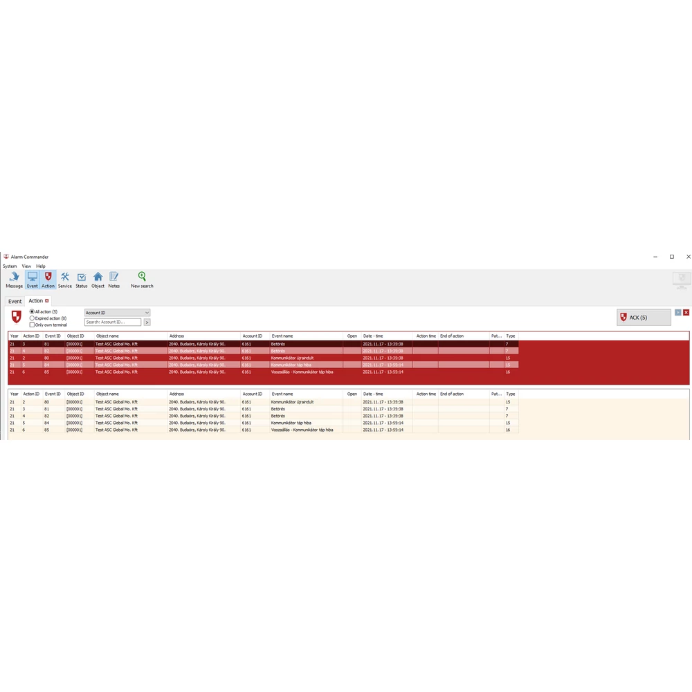 Alarm Commander is central monitoring software that can process messages received by various digital receivers and assist the operator in taking any action based on previously recorded data. It minimizes the task for the operator based on pre-set parameters and facilitates quick and efficient action thanks to its transparent, simple interface and handling.